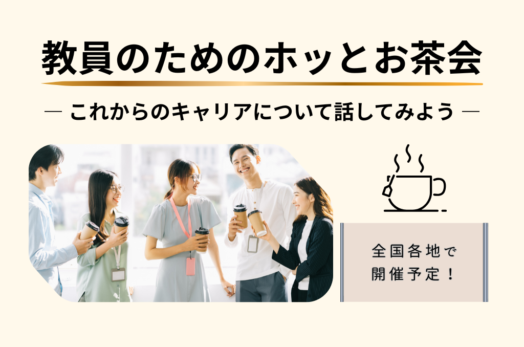 教員のためのホッとお茶会(対面開催)― これからのキャリアについて考えよう ― 日々の忙しさの中で、 「このままでいいのかな」「これからどうしよう」 そんな思いを抱くことはありませんか? このお茶会は、同じ教員経験を持つ […]