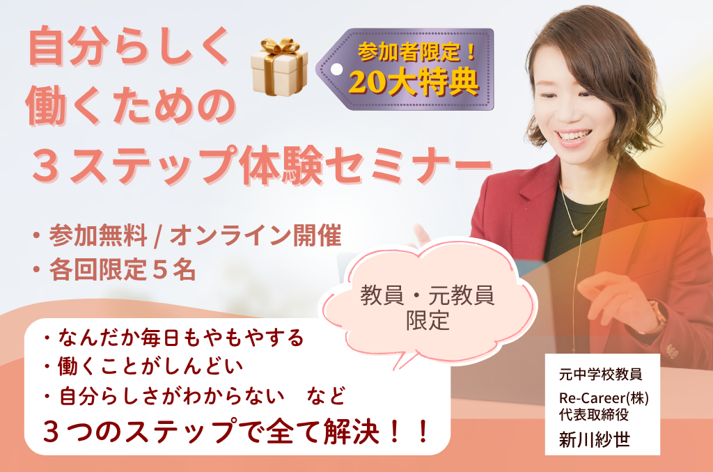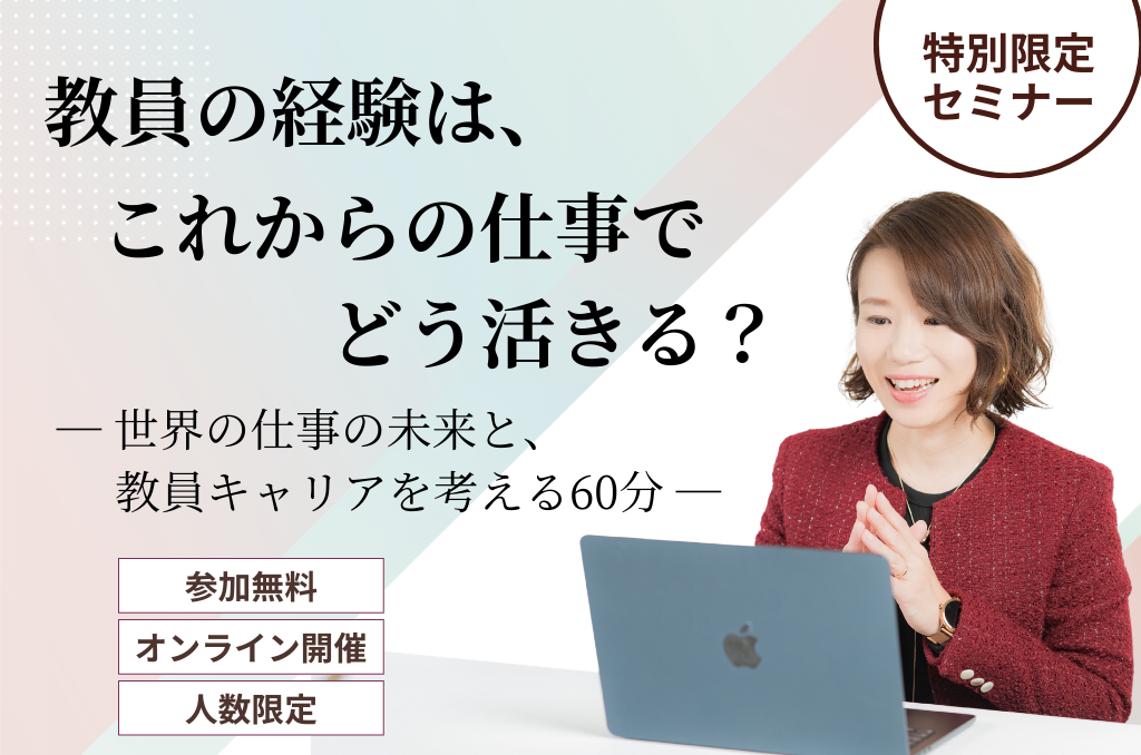 【育休・病休中の先生限定】復帰前に知る「これからの働き方」3ステップ体験セミナー 教員にとって最も忙しい4月。今は落ち着いて過ごせていても、復帰後の4月を思うと少し気が重い——そんな方も多いのではないでしょうか。 「この […]