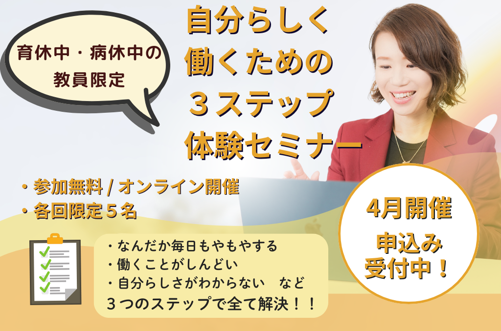 【育休・病休中の先生限定】復帰前に知る「これからの働き方」3ステップ体験セミナー